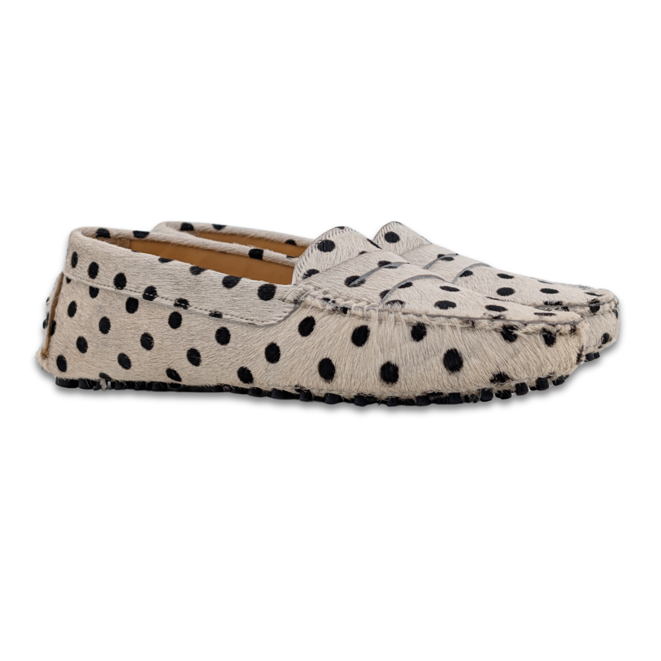 Hand cut and hand lasted driver shoe made in a small Italian family owned factory to a high standard with exceptional long haired Italian calf (pony) leather.