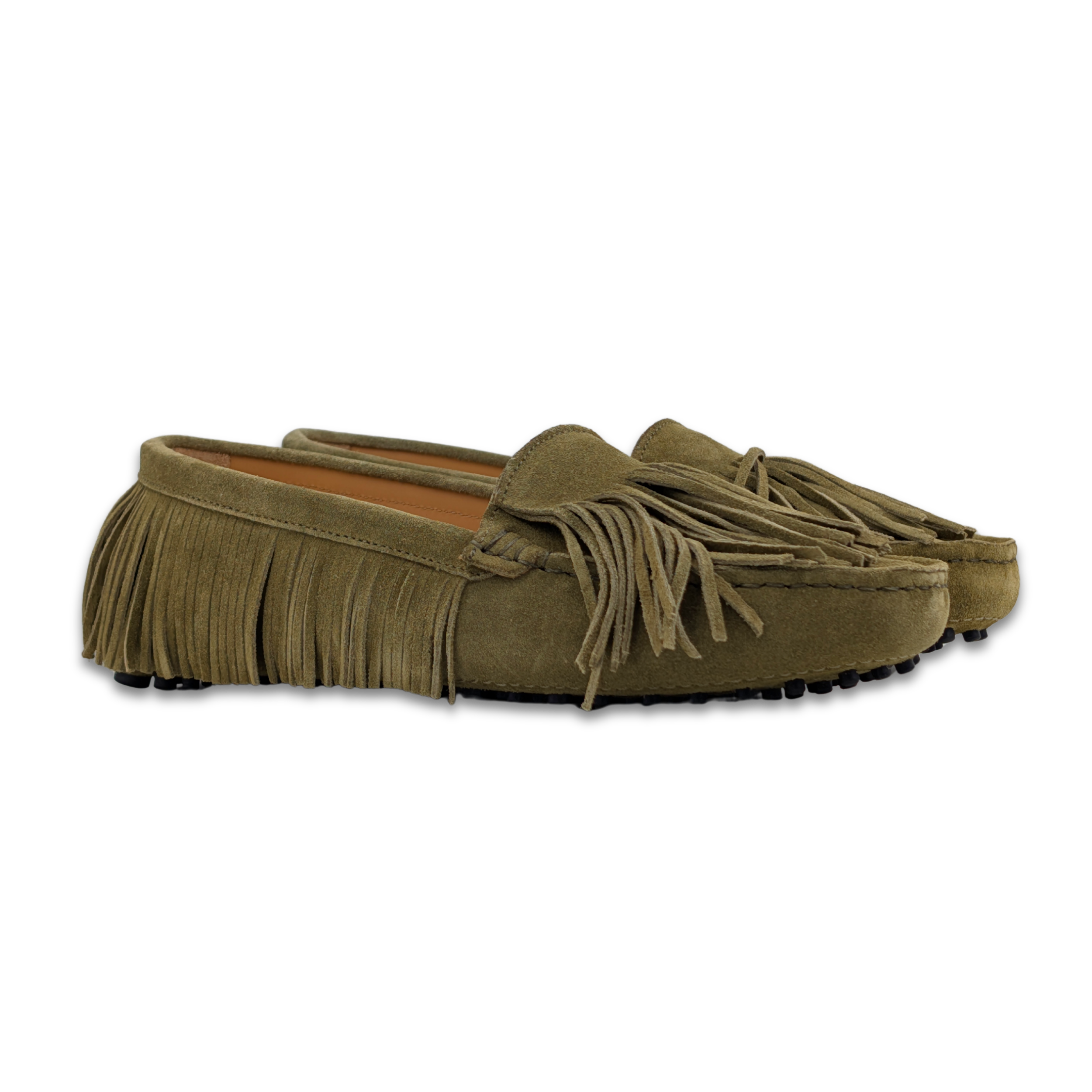 Hand cut and hand lasted suede driver shoe with full suede leather fringe made in a small Italian family owned factory to a high standard with exceptional Italian leather.