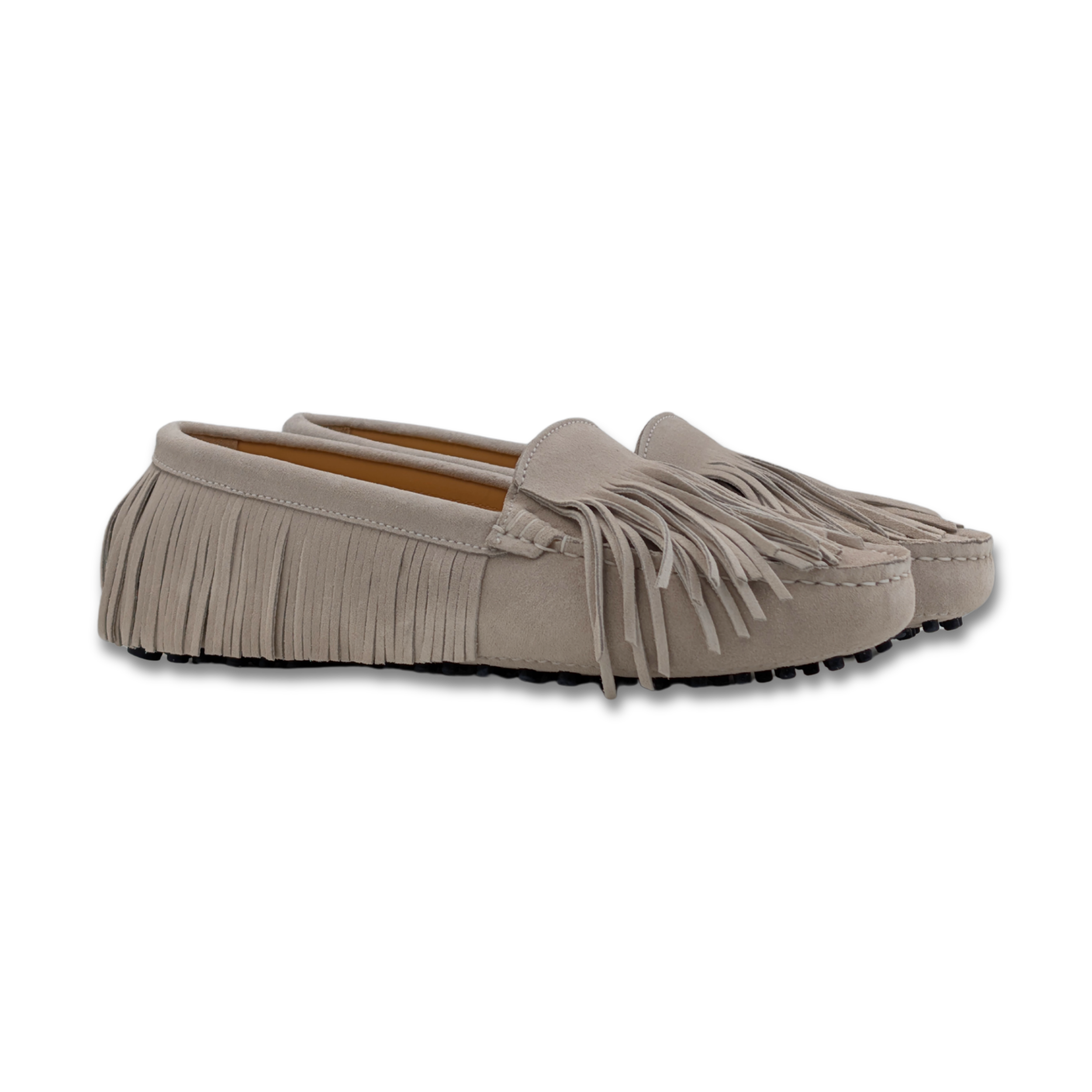Hand cut and hand lasted suede driver shoe with full suede leather fringe made in a small Italian family owned factory to a high standard with exceptional Italian leather.